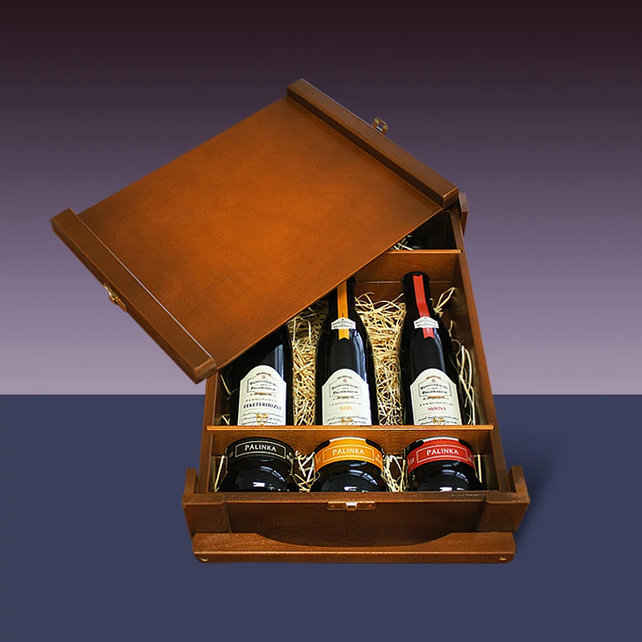 3 férőhelyes faláda, melybe tetszés szerint válogathat a 0,5l-es kiszerelésű pálinkák közül.