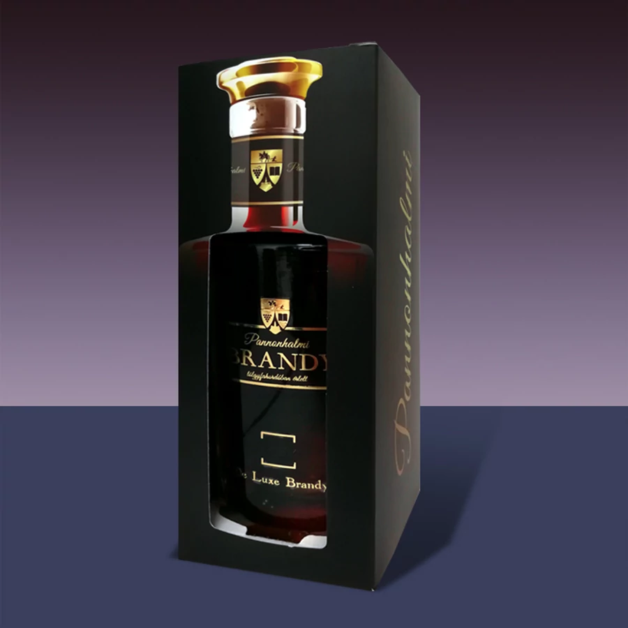 Elegáns díszdoboz a Pannonhalmi Brandy 0,7l és Pannonhalmi Szivarpárlat 0,7l termékekhez.